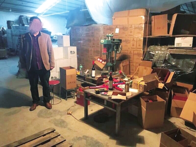 3月16日,时机成熟,专案民警分为3个行动小组开展“收网”行动。当天中午,在南阳寨工业园区的仓库,有两辆货车向外运红酒,大门打开时,民警将货车控制住,随后进入仓库内进行检查。民警发现,在轴承仓库后面堆放了数量惊人的假冒奔富红酒。