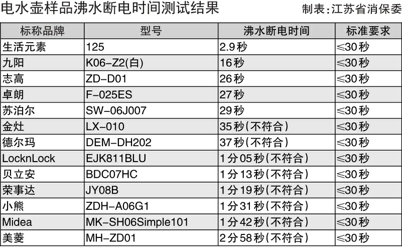 江苏省消保委迷你小家电比较试验结果显示 8款电水壶沸水断电时间不符合要求
