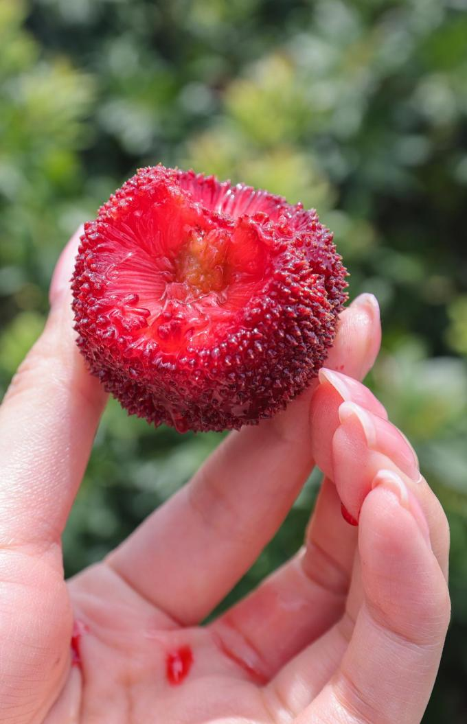 ▲浙江仙居的地理、气候优势造就了仙居杨梅的色美、味甜、个大、核小。多多好农货探访“热搜主角”,仙居杨梅鲜向全国。