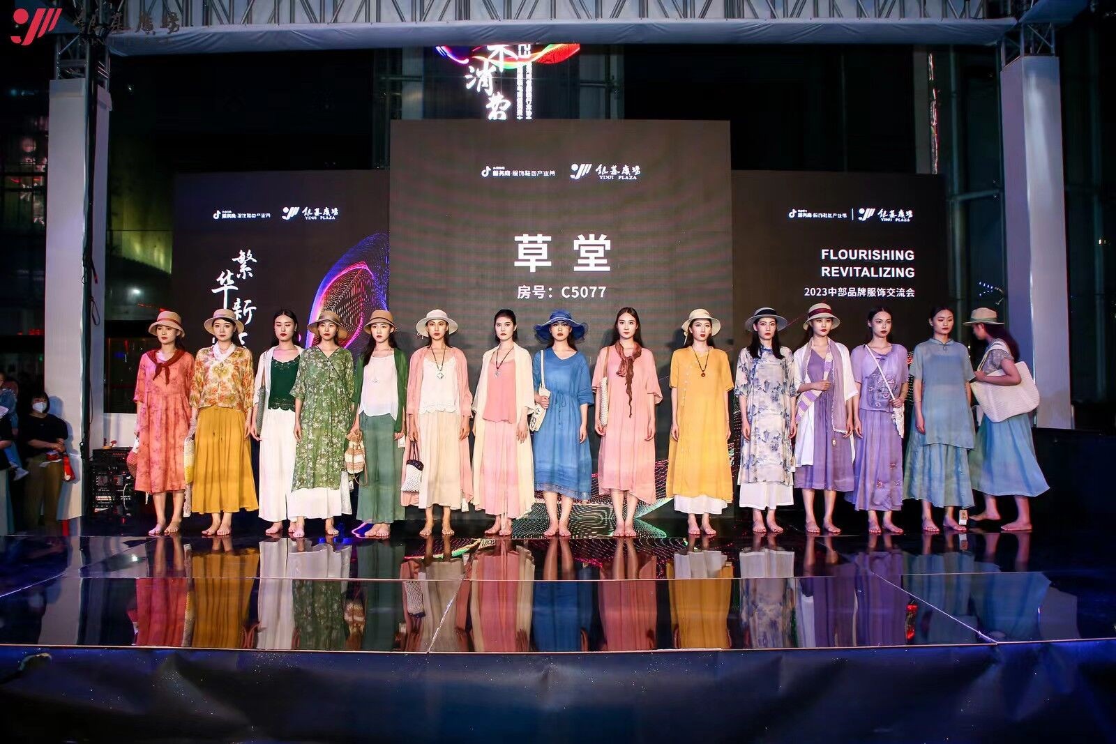 灯光秀场,原创耀立!2023中部品牌交流会银基原创秀场,以“繁华新生”为主题,甄选优质供应链品牌商家,进行潮流女装、中国风、森系女装、儿童礼服等的原创设计展示。