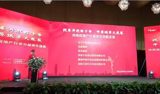 12月18日下午,河南地产行业庆祝改革开放40周年企业家论坛暨河南房地产行业公益颁奖盛典在郑州隆重举行。