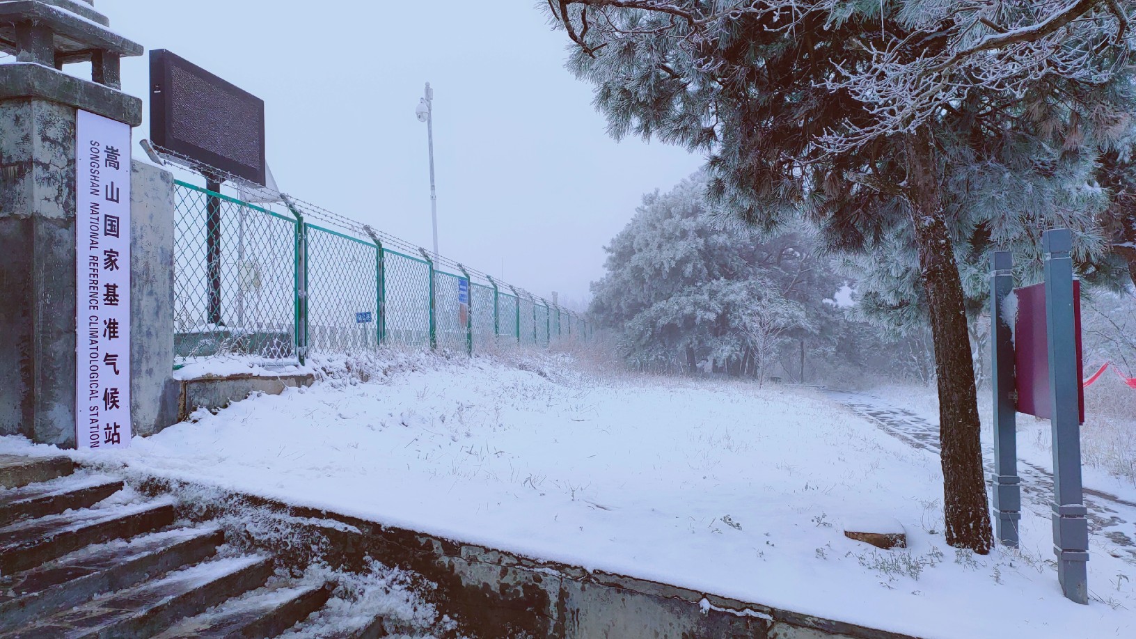 大河网讯(记者 莫韶华)郑州昨天下雪了!11月20日晚,郑州市出现小雨和小雨夹雪,嵩山积雪已达一指深,清晨,新密伏羲山工作人员正在清理玻璃栈道上的积雪,山上出现了雾凇,银装素裹,美不胜收。