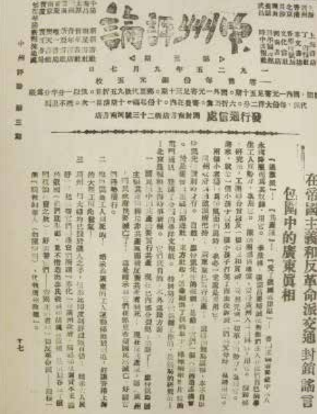 1925年9月7日发行的《中州评论》图片来源:简明河南党史